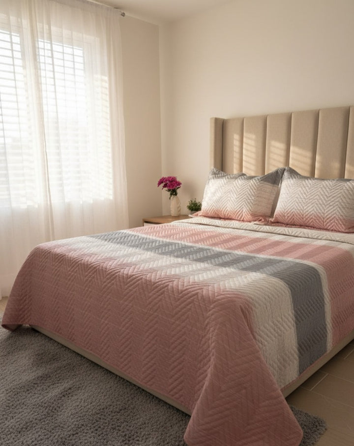 COLCHA ULTRADELGADA LÍNEAS ROSA