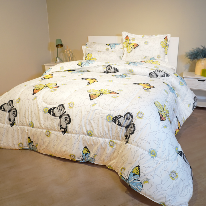 COMBO ACOLCHADO + JUEGO DE SABANAS MARIPOSAS
