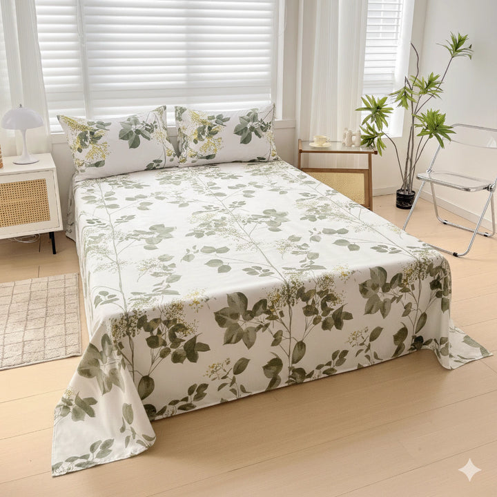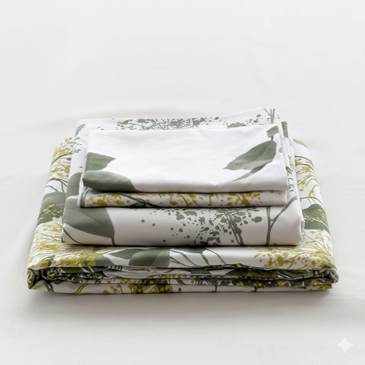 JUEGO DE SÁBANA FLORAL BOTANICO OLIVA