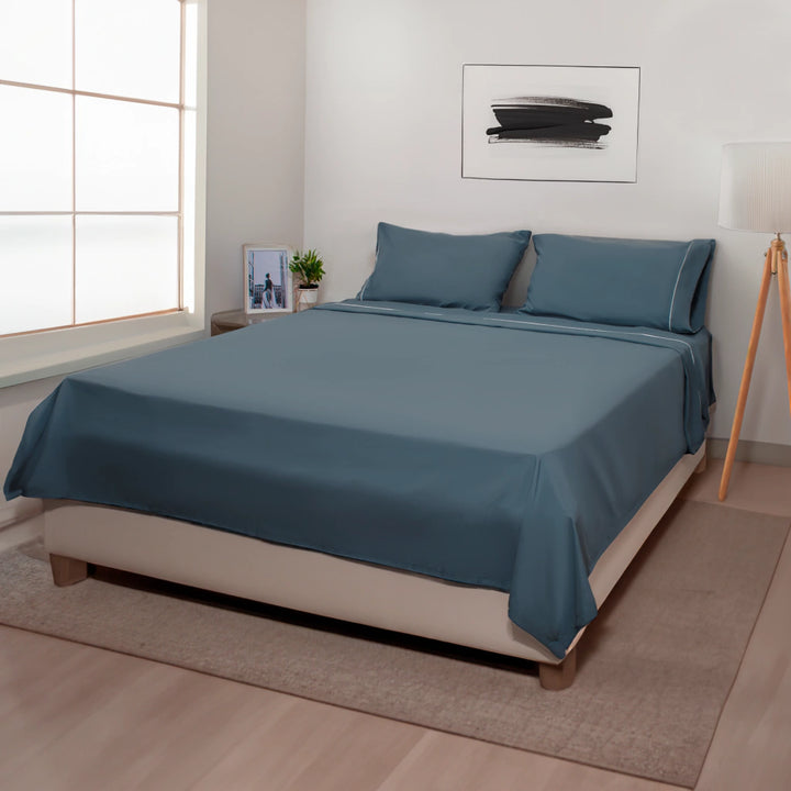 - QUEEN: Sábana ajustable (160 cm x 200cm x 40 cm), Sobresábana (224 cm x 240cm), 2 fundas (50 cm x 75 cm)