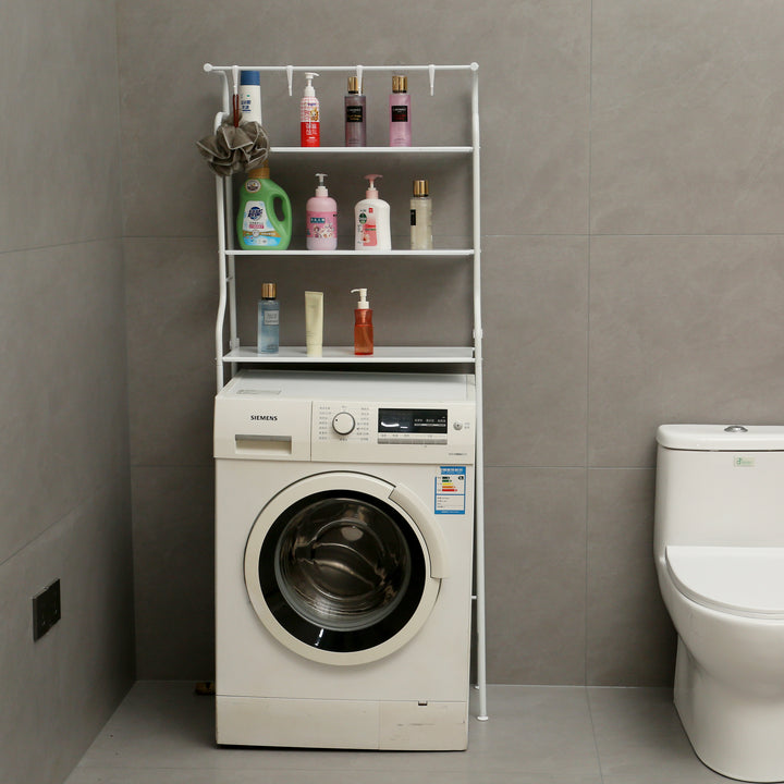 Aprovecha al máximo el espacio disponible en tu baño o lavadero con este práctico estante metálico de 3 niveles. Ideal para ubicar sobre sanitarios o lavadoras, te permite mantener todo en orden sin ocupar espacio adicional en el piso.