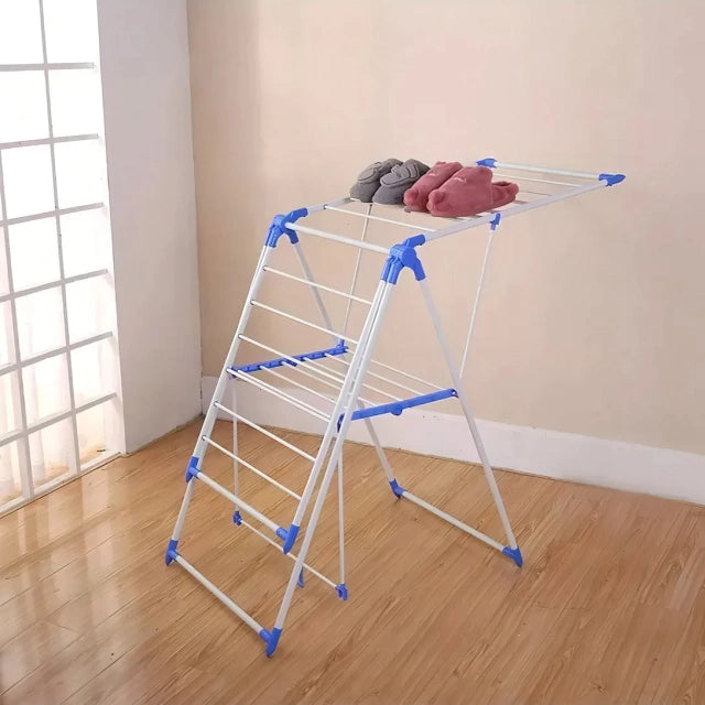 Maximiza el espacio en tu lavandería, baño o balcón con este tendedero plegable multifuncional, ideal para secar ropa de forma ordenada y eficiente. Su diseño compacto con alas laterales ofrece mayor capacidad de secado sin sacrificar espacio.