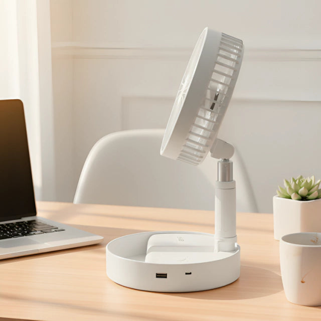 Disfruta de una ventilación potente y silenciosa en cualquier lugar con este ventilador portátil de diseño plegable y altura ajustable. Ideal para escritorios, camas, pisos y espacios reducidos. ¡Llévalo a donde vayas y mantente fresco todo el día!